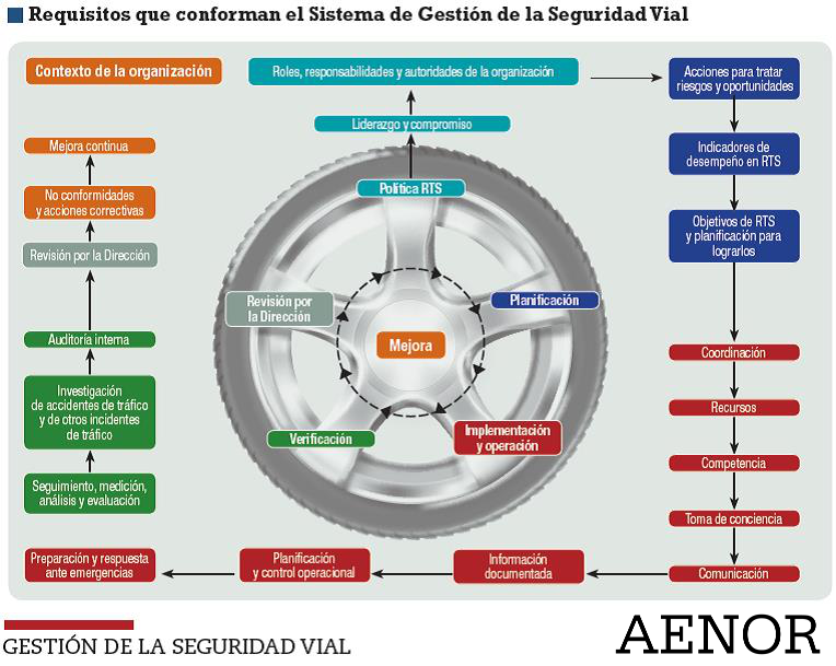 En este contexto, en octubre de 2012 se publica la norma ISO 39001 que en abril de 2013, se convierte en norma UNE ISO 39001:2013, Sistema de Gestión de la Seguridad Vial Requisitos y recomendaciones de buenas prácticas (RTS, Road Traffic Safety).
